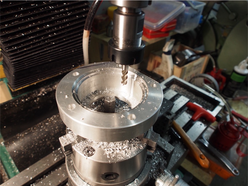 Milling a flat face on the Transfer Case 'shelf' so as to allow a 'circlip clamp' be bolted into position, The Circlip Clamp weill hold the circlip fully expanded in its groove so it can never collapse , thus preventing the only known cause of 55S17W Transfer Case failure.
