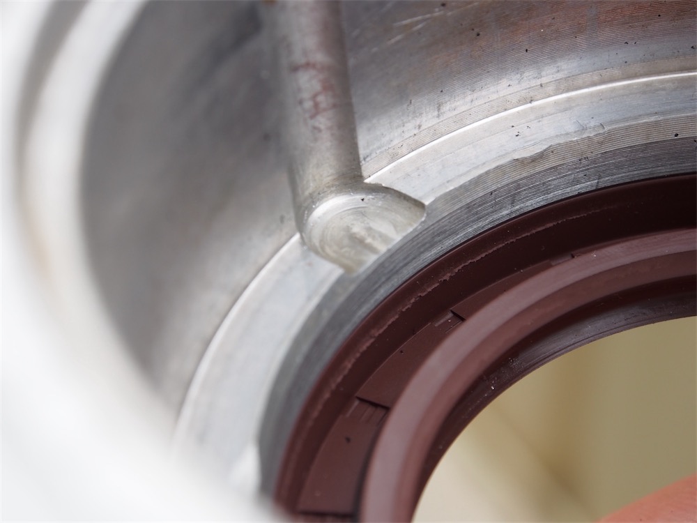 Also note the last image in the above series, it shows where the seal sits on the drive flange surface, in its original position, the seal surface is sitting right on the chamfer where it can not possibly seal effectively and will quickly wear away. Modifying the housing moves the seal forward approx 2.5mm and it sits in the perfect spot. This explains why so many Iveco Daily 4x4 leak oil from the TC input shaft.