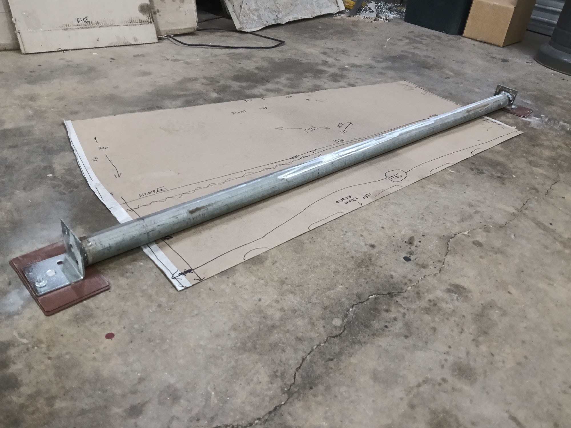 Next stage of the body I need to actually shape some sheet metal to make the bonnet, up till now I've just used flat sheets. I decided to make the bonnet from 1.6mm aluminium as I'm familiar with it after working on Land Rovers for 45 years. I don't have any metal rollers so welded some brackets on the end of a cyclone fence post so that it sat just 2mm above the floor.