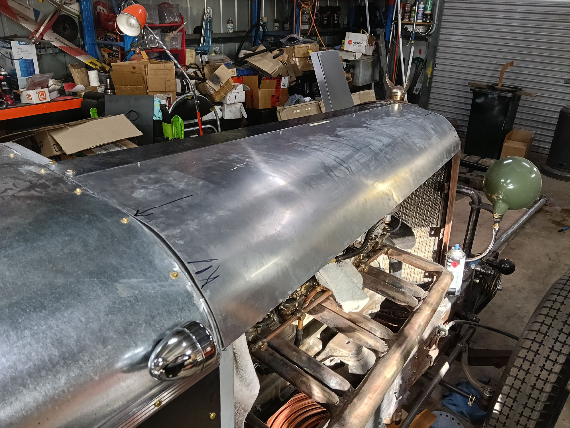Radiator sorted, but I needed a shell and not confident about my sheetmetal skills to make compound curves I bought another radiator and shell from Marketplace, Seller said it was on a Dodge but he didn't think it was original to the car . The Shell fits nicely over the Packard radiator , Turns out its from a Jewett , quite a rare car in Australia, its a big American car from the late 1920's which evolved into the Graham Paige.