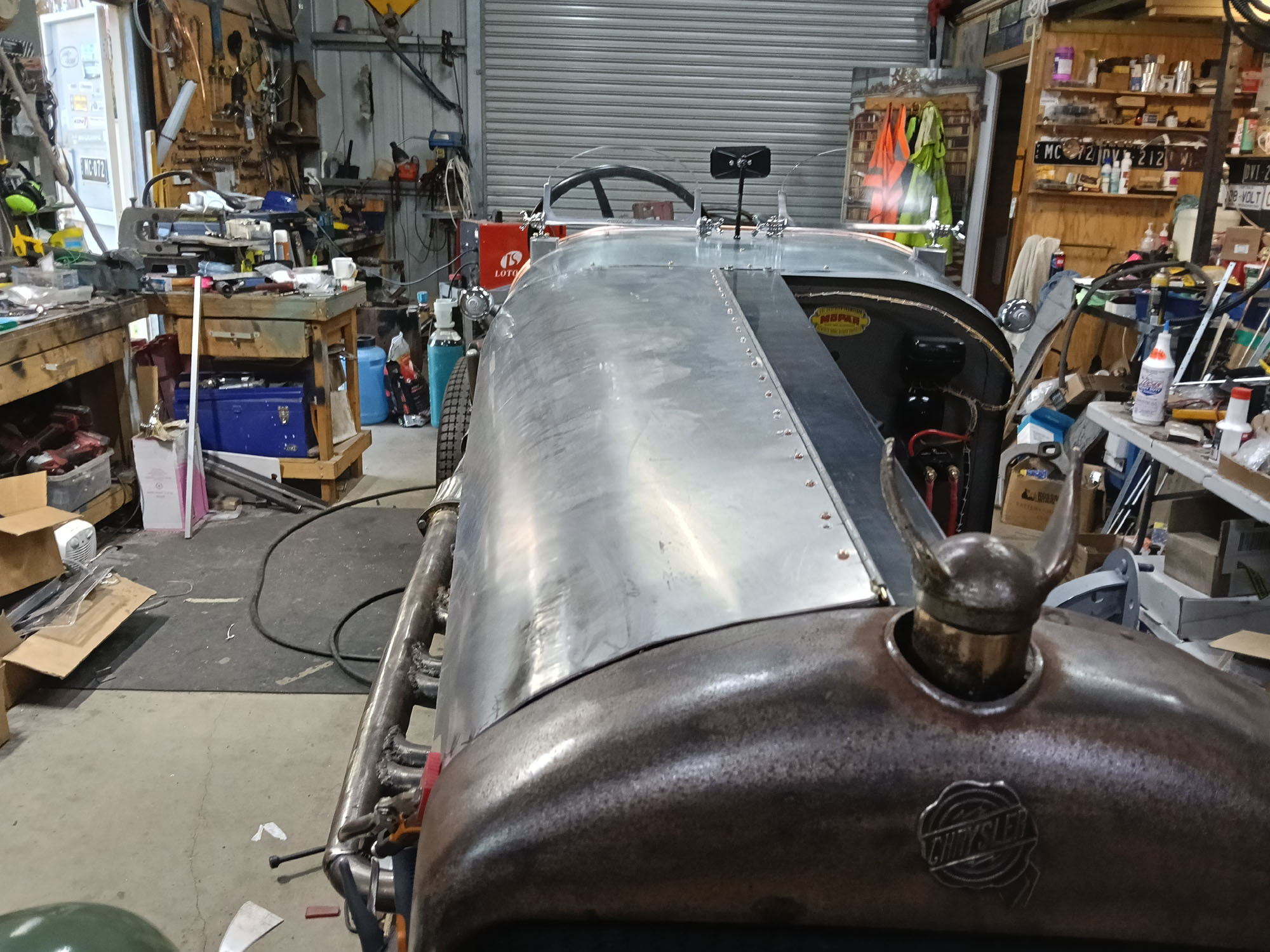 To replicate the looks & style of the Railton Replica, the rear of the car needs a boat tail, I had an envisioned a VW Beetle or Morris bonnet but when I picked up the Packard engines Frank pulled a Peugeot 203 bonnet from his stash and donated to the cause.